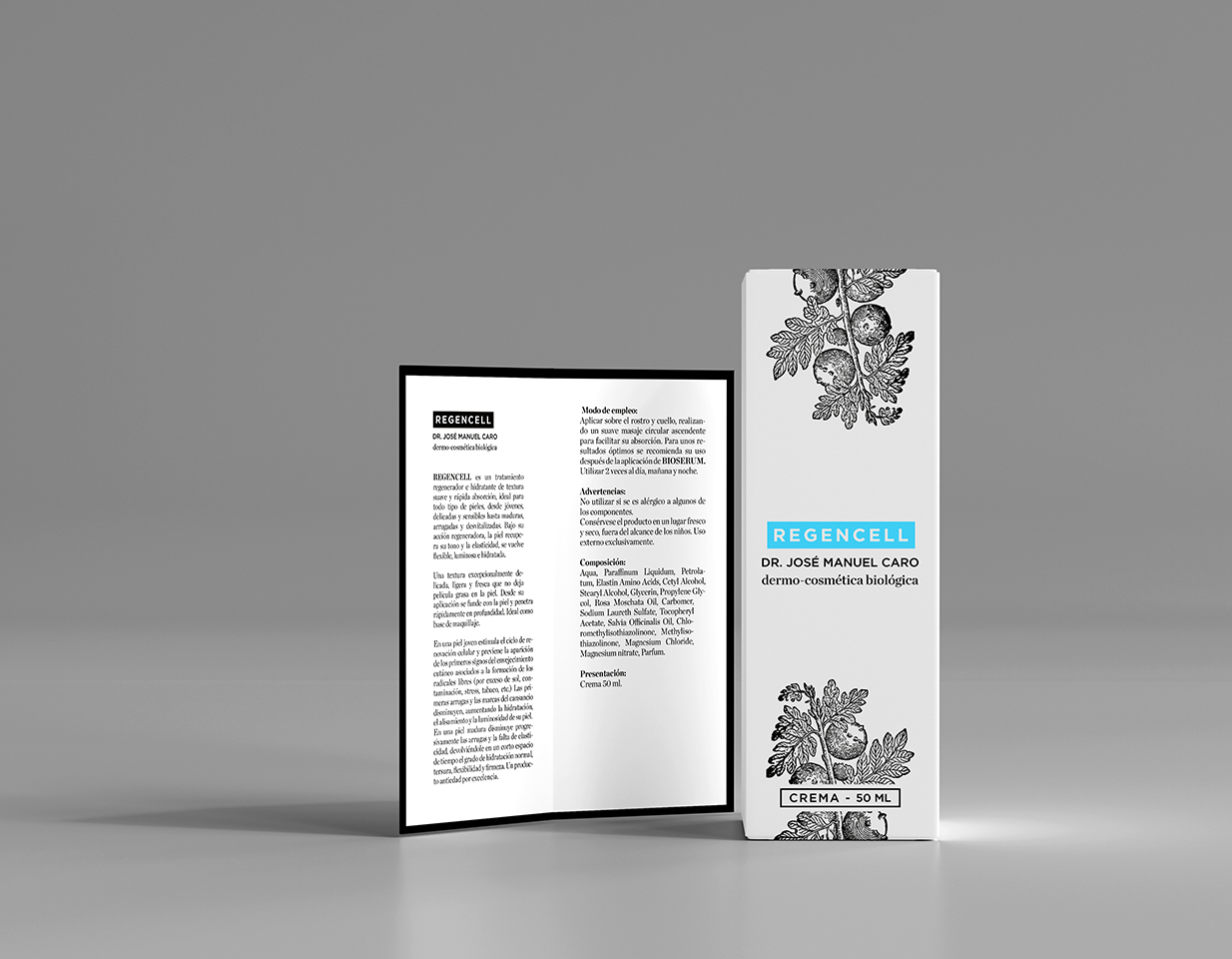 El Dr. José Manuel Caro, con más de 30 años de experiencia en medicina estética y rejuvenecimiento, nos encomendó el diseño y desarrollo de una línea de productos especializados para el cuidado estético. Esta gama incluye cremas, serums, tratamientos anticelulíticos, Biosol y Regencell, con volúmenes que varían entre 50ml y 200ml. El objetivo principal del diseño es reflejar profesionalismo, simplicidad y efectividad, alineándose con la metodología del Dr. Caro: resolver problemas estéticos de forma directa, sin rodeos.