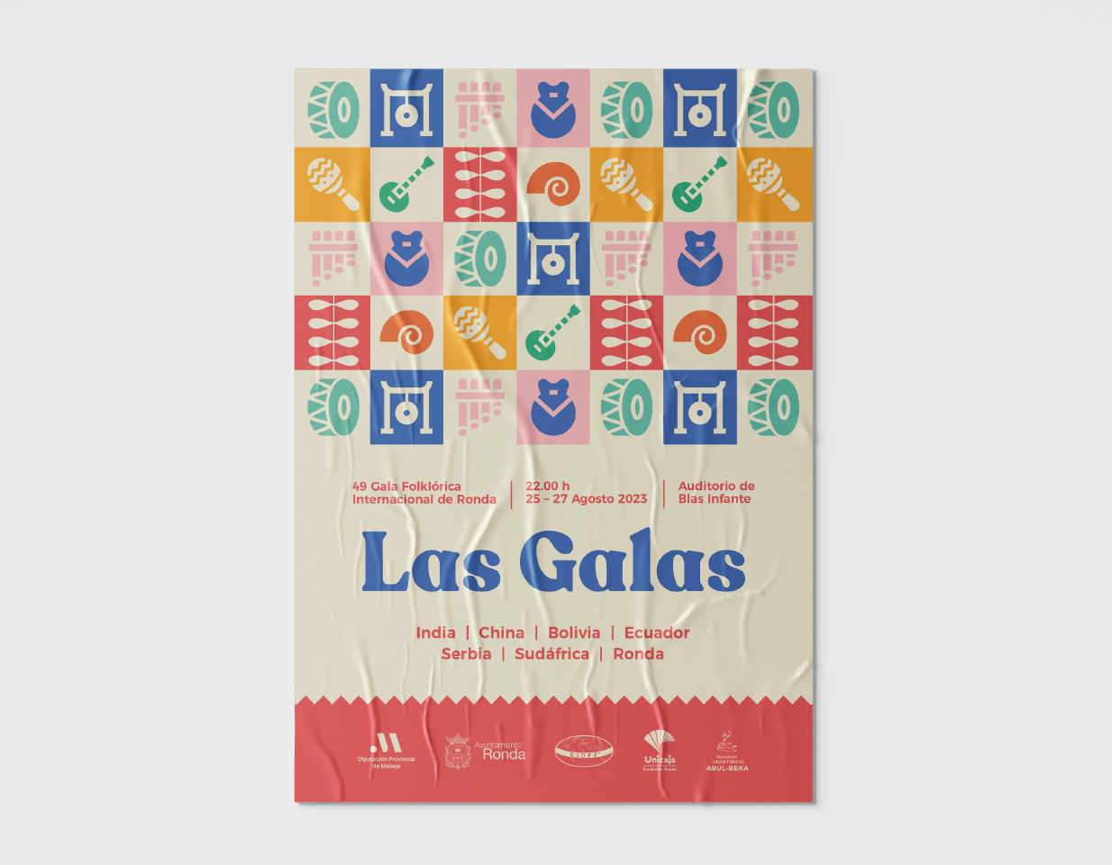 Con una trayectoria de casi cinco décadas, la imagen gráfica del evento ha evolucionado significativamente, explorando técnicas como colores planos, fotografías detalladas, ilustraciones y collages. Sin embargo, surgió un reto: la desconexión entre el nombre oficial del festival –“Galas Folklóricas Internacionales de Ronda”– y la forma en que se reconoce popularmente.