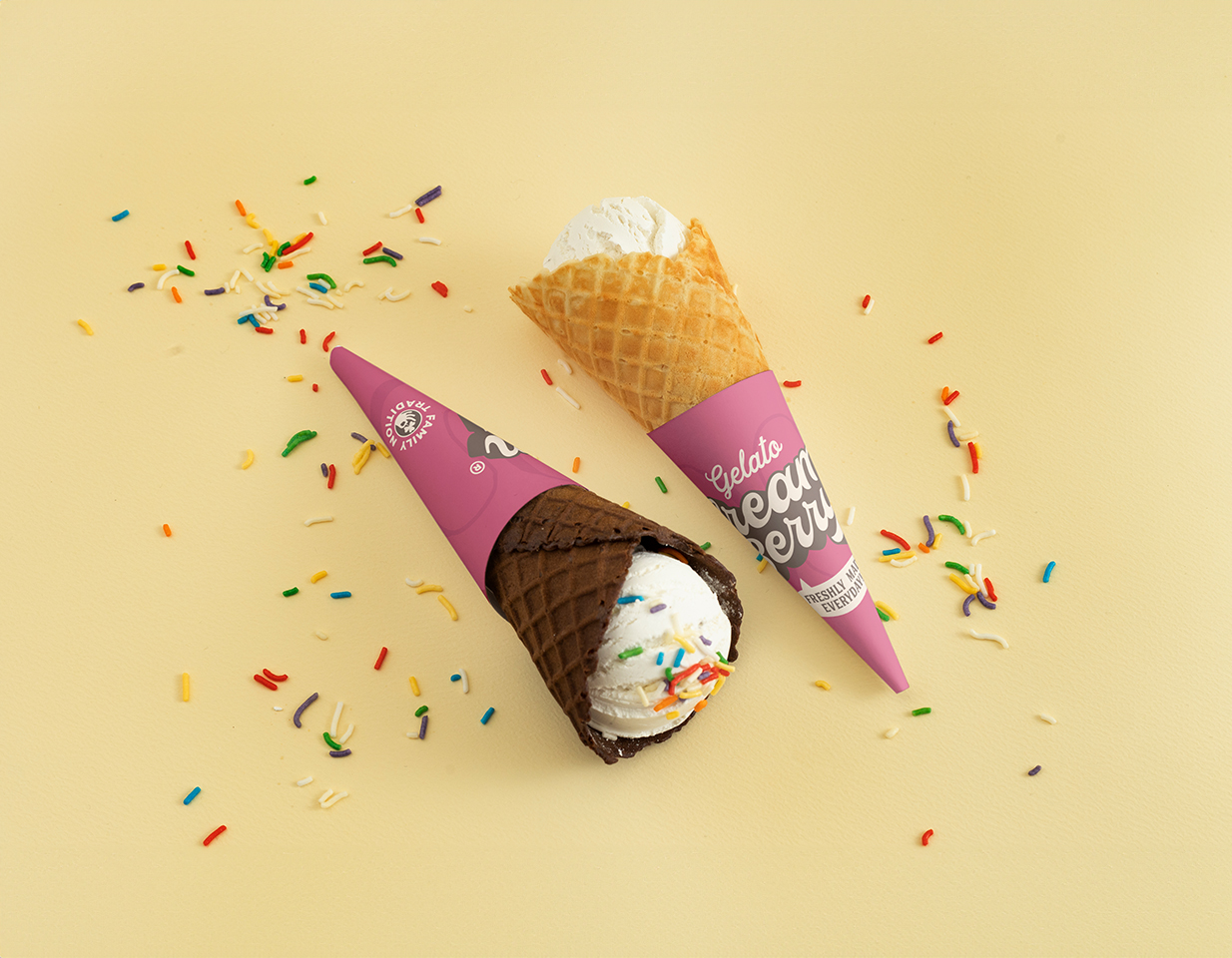 Tono chocolate: Aporta la nota de tierra y sofisticación, vinculando la marca con la indulgencia y los sabores clásicos del gelato.